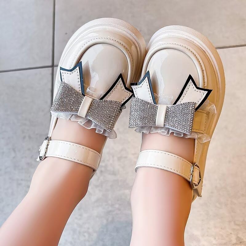 • Decorative Details: Adorned with a sparkling rhinestone-studded bow and metallic accents, these shoes add a touch of sophistication to any outfit.