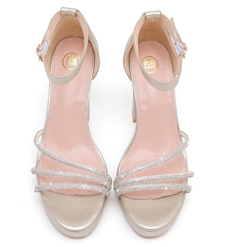 • DRESSY AND STYLISH DESIGN: The design of these platform heels combines novelty with trendy design. Featuring with bling rhinestone strap over vamp embellishes your feet, and fashion Open-toe style provides fitable feet space, these womens dress shoes go well with any outfit. Adjustable buckle closure for criss cross strap offers a customized, comfortable fit.