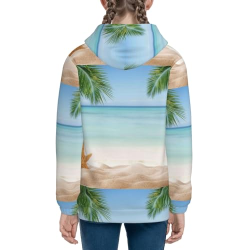 Starfish in Beach Kids Pullover Hoodies Boys Zip Up Sweatshirts Girls Athletic Clothes with Pocket 5