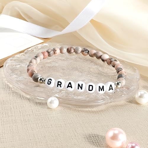 • Long Distance Touch Bracelets: Spelling out grandma letter by letter highlights the important marks she has etched in our hearts. The pink zebra stone can bring good luck to grandma. Give it to grandma and give her a big surprise! Thank you gifts grandmother, gift for grandma, grandma gift, grandson gifts for grandma, granddaughter gifts for grandma, best grandma gifts, abuela gifts, grandma granddaughter gifts, grandma presents, christmas gifts for grandma and grandmother birthday gifts.