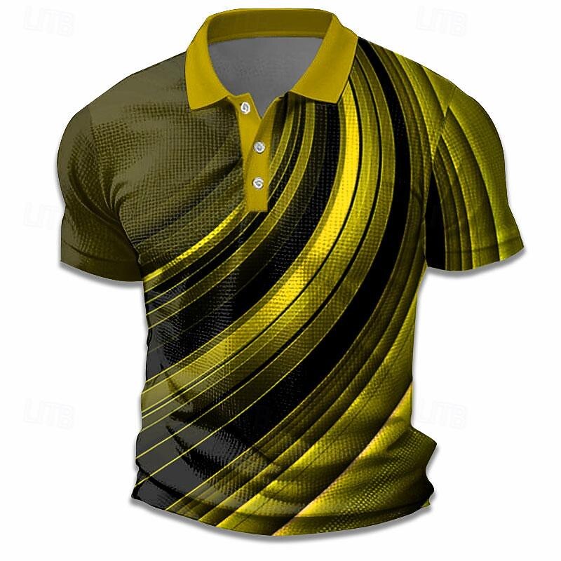 More information about Men's Geometric Golf Shirt Short Sleeve Polo Shirts Collared Shirts Business Casual Vacation Wear Formal Wear Festival Wear Buttons 3D Print Summer Spring Yellow Blue Green