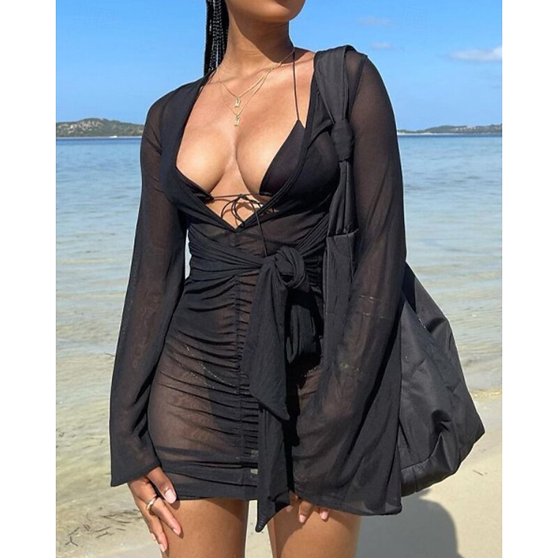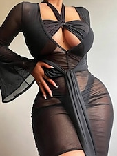 More information about Women's Mini Dress Black Dress Cocktail Dress Bodycon Formal Dress Fashion Modern Vacation Going out Club Regular Fit Plain Long Sleeve V Neck White Summer