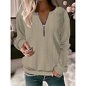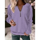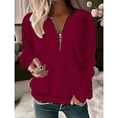 More information about Women's Blouse Solid Color Stylish Casual Long Sleeve Crew Neck Regular Tops Daily Zipper Black Pink Red Blue Purple Spring Fall Winter