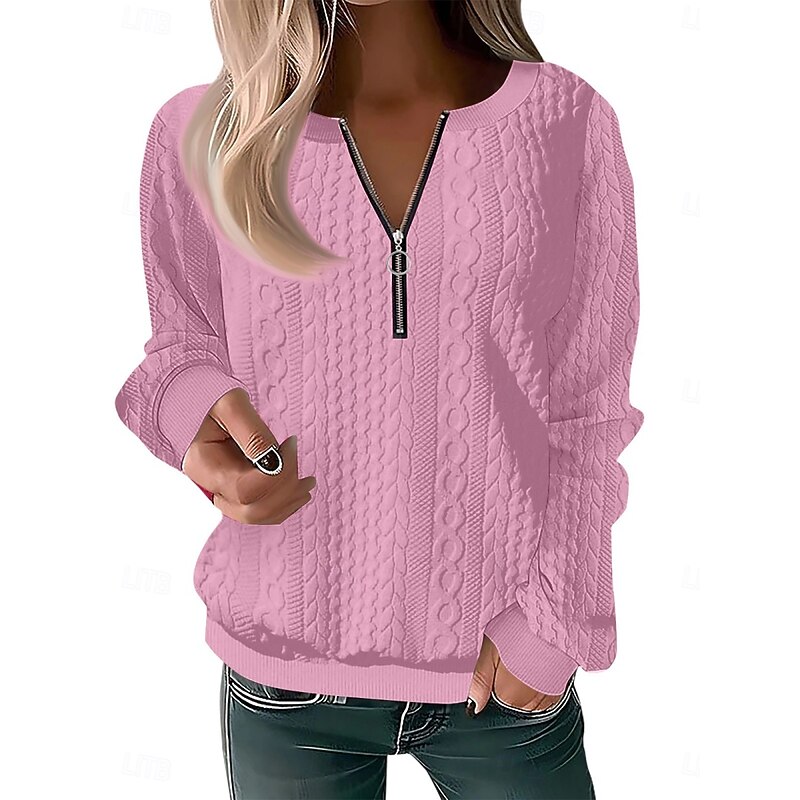 HOT ! Women's Blouse Solid Color Stylish Casual Long Sleeve Crew Neck Regular Tops Daily Zipper Black Pink Red Blue Purple Spring Fall Winter