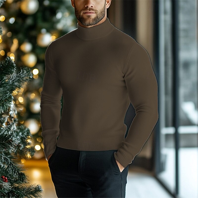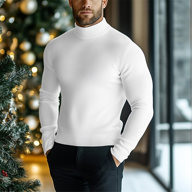HOT ! Men's Pullover Sweater Jumper Knit Sweater Ribbed Knit Regular Knitted Plain Turtleneck Fashion Casual Daily Wear Date Clothing Apparel Fall & Winter Black White S M L