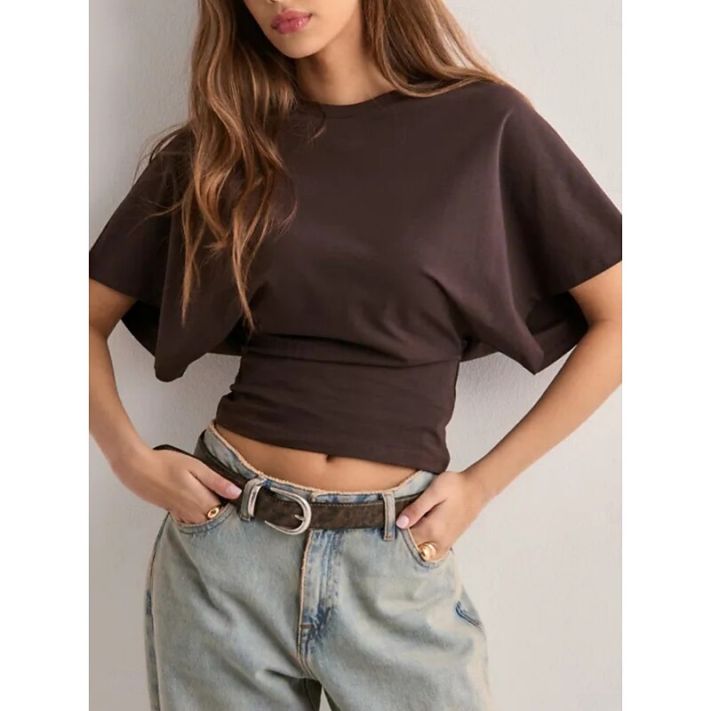 $17.99 - Women's T Shirt Solid Color Plain Basic Modern Casual Half Sleeve Round Neck Regular Tops Daily Weekend Black White Pink Brown Summer 2025. Shop for cheap Plain tee online? Buy at lightinthebox.com on sale today!