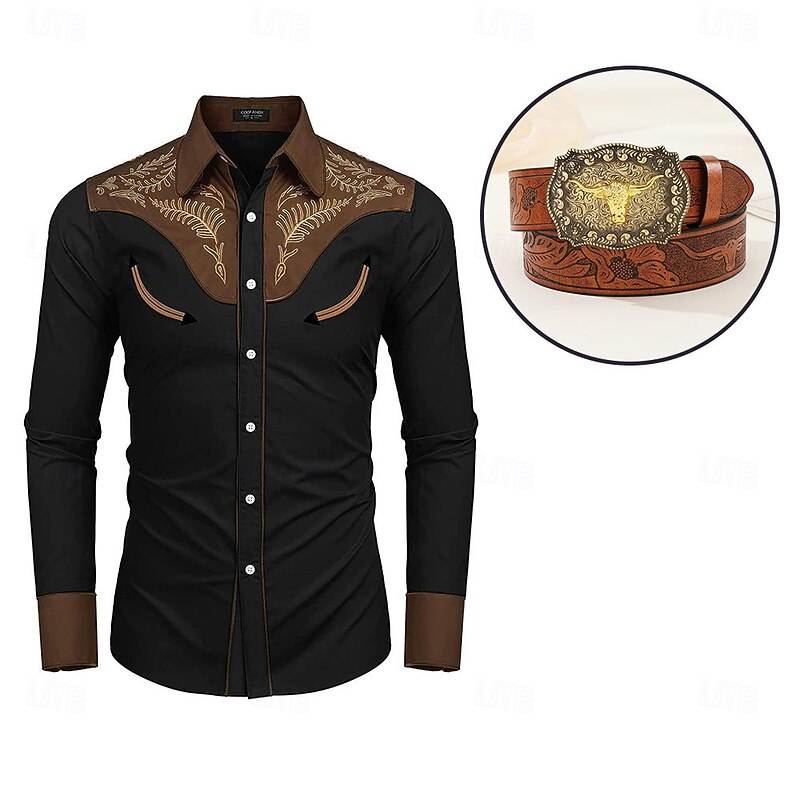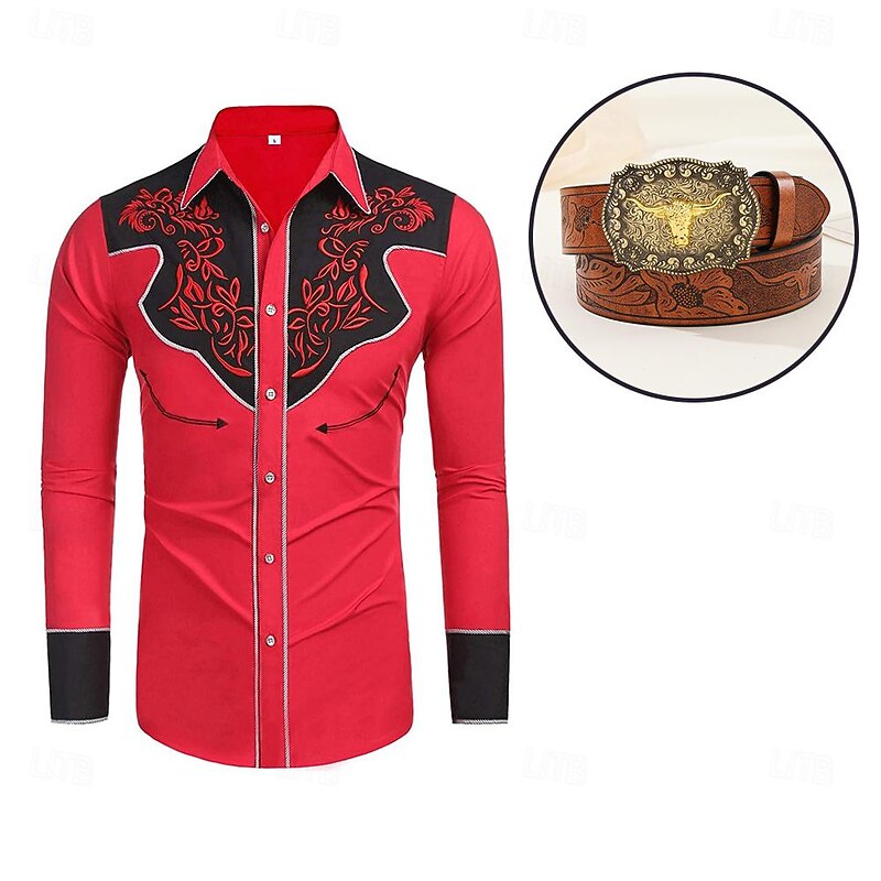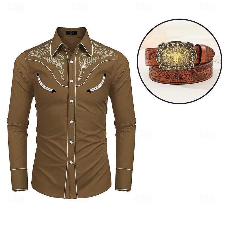 More information about Classical Retro Vintage Blouse / Shirt Waist Belt West Cowboy Embroidered Embroidery Fancy Dress Men's Masquerade Dailywear Bachelorette Party Adults' Shirt Waist Belt All Seasons