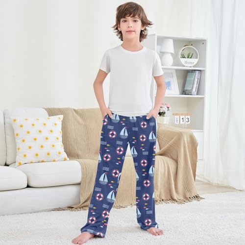 Boy's Pj Pants Ship Life Buoy Fish Dark Blue Lounge Bottoms Elastic Kids Sweatpants Joggers with Pockets Size 6-14 3