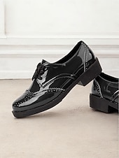 More information about Women's Patent Faux Leather Oxford Shoes – Vintage Style Brogues with Lace-Up Design for Casual and Formal Occasions