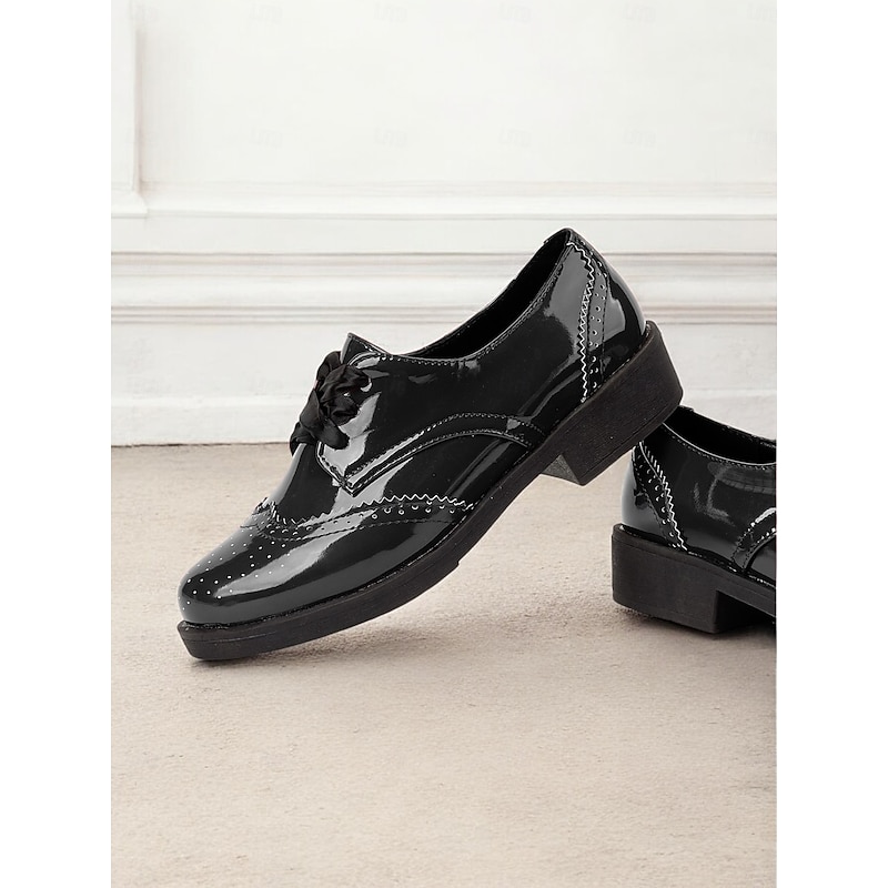 Women's Patent Faux Leather Oxford Shoes – Vintage Style Brogues with Lace-Up Design for Casual and Formal Occasions 1