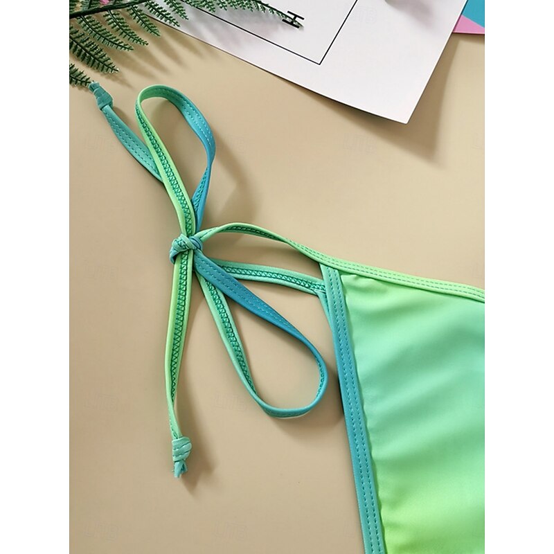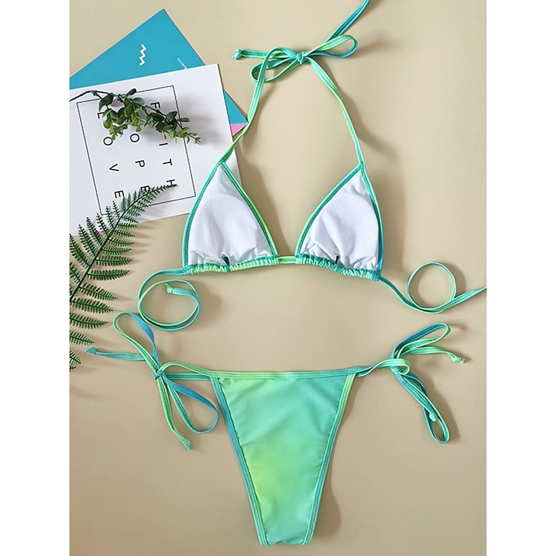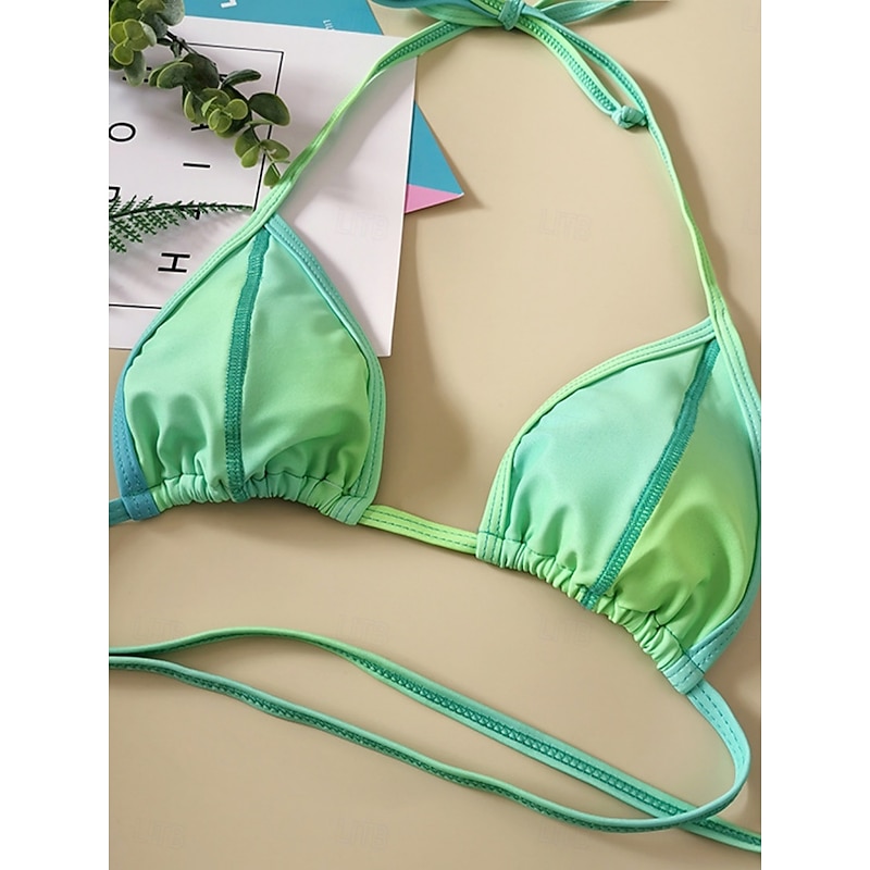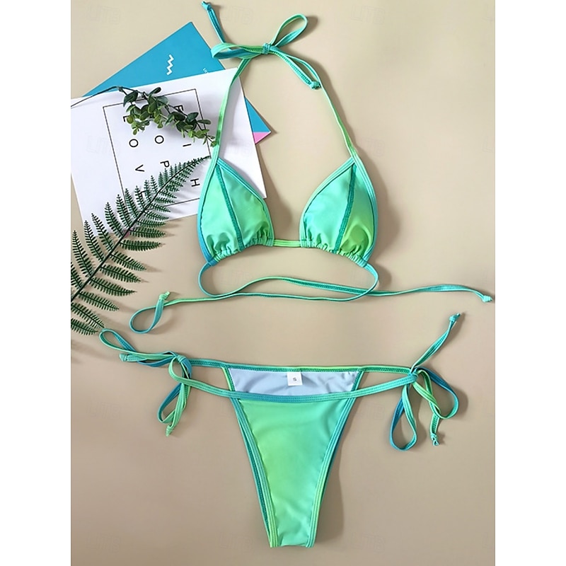 HOT ! Women's Swimwear Bikini 2 Piece Cheeky Swimsuit Backless Slim Vacation Beach Wear Solid Color Halter Neck Sleeveless Bathing Suits