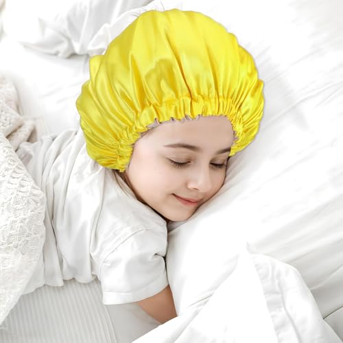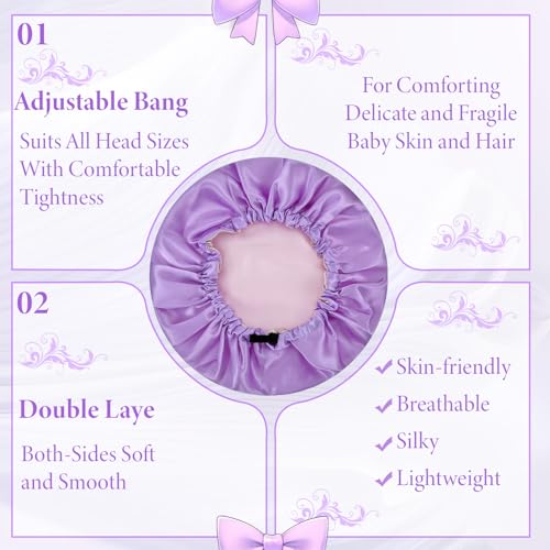 2 Pcs Baby Bonnet, Double Layer Satin Bonnet for Kids Silk Adjustable Kids Sleeping Cap velvety Wide Band Sleep Cap for Sleeping Night Hat for Toddler Child Natural Hair Curly Hair(Pueple+Yellow)