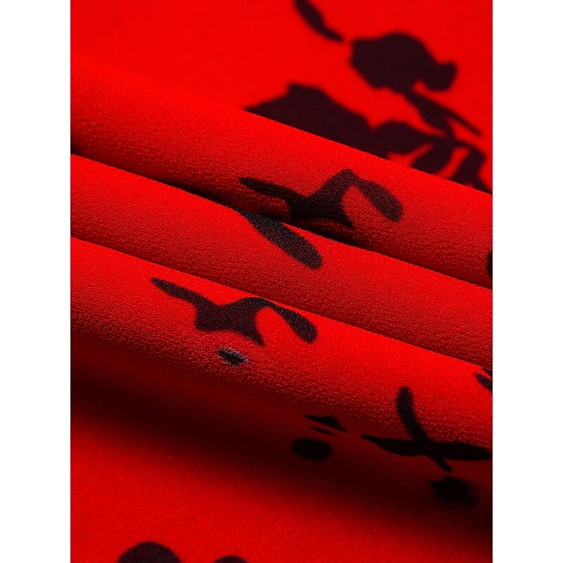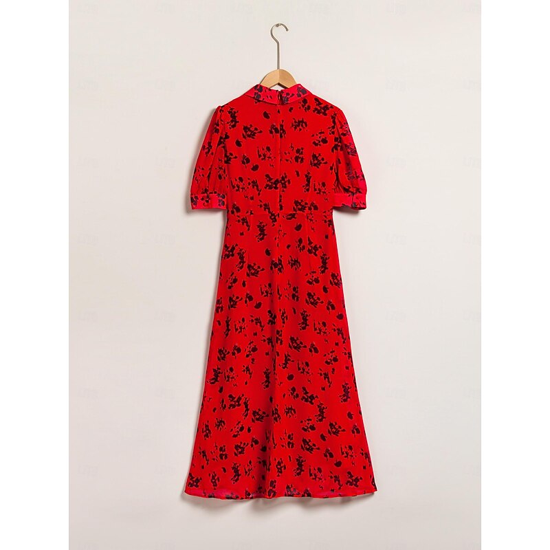 More information about Chiffon Floral Print Puff Sleeve Midi Dress