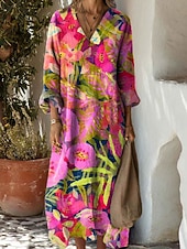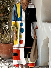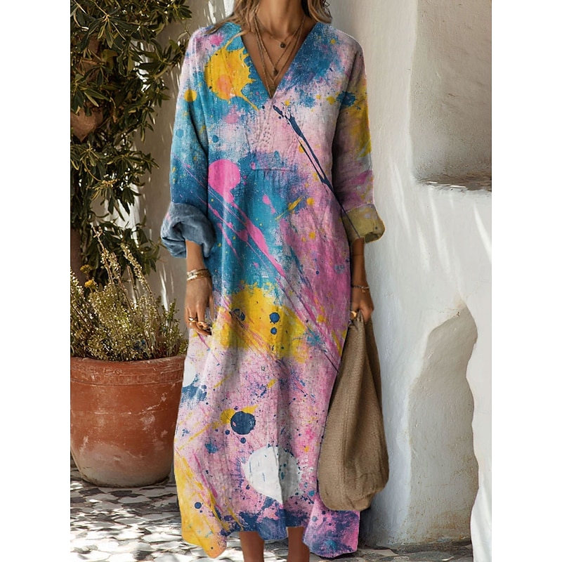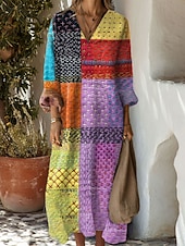 More information about Women's Maxi Dress Sundress A Line Dress Vacation Casual Boho Party Holiday Beach Regular Fit Floral Graphic Geometric Long Sleeve V Neck Black Pink Red Blue Summer Spring Fall