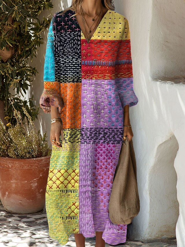 Women's Maxi Dress Sundress A Line Dress Vacation Casual Boho Party Holiday Beach Regular Fit Floral Graphic Geometric Long Sleeve V Neck Black Pink Red Blue Summer Spring Fall 11