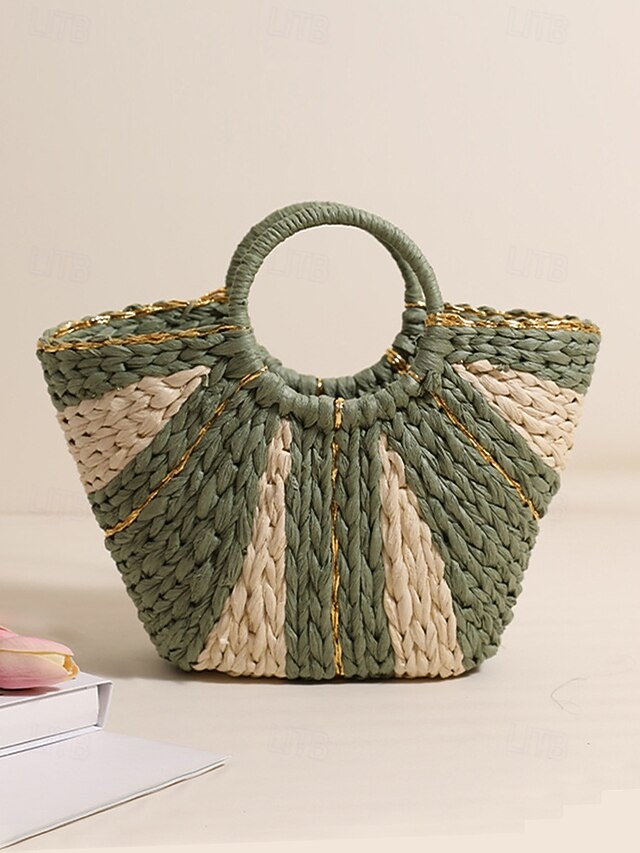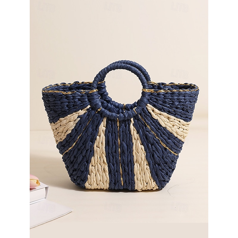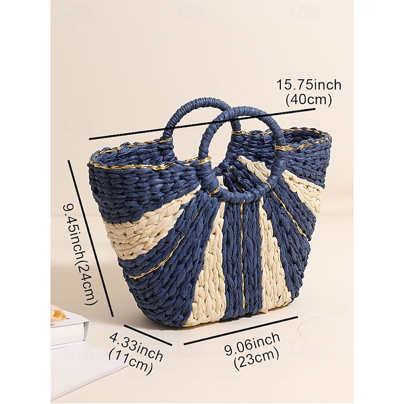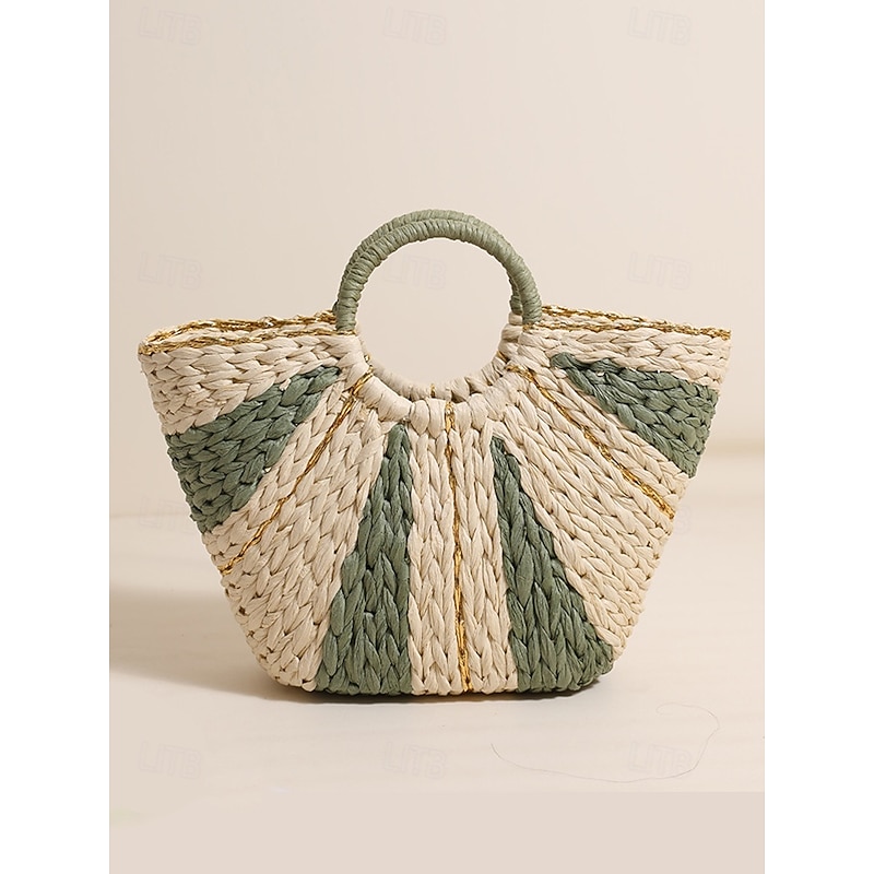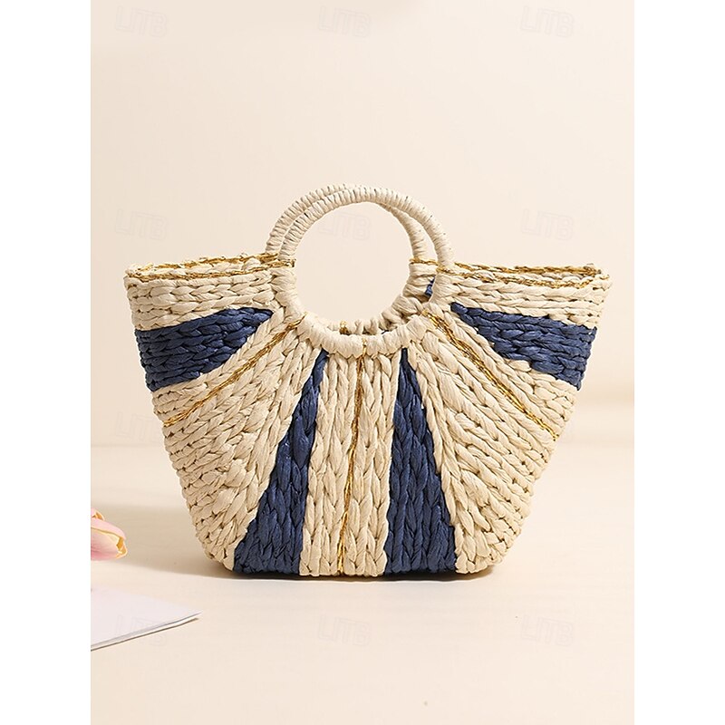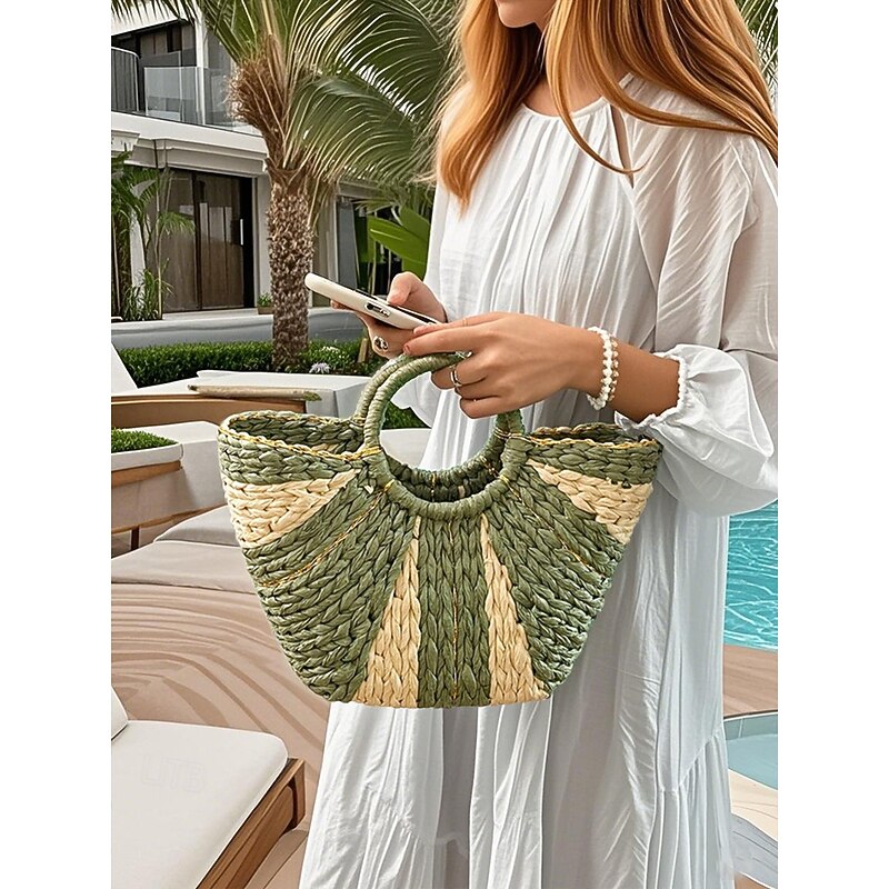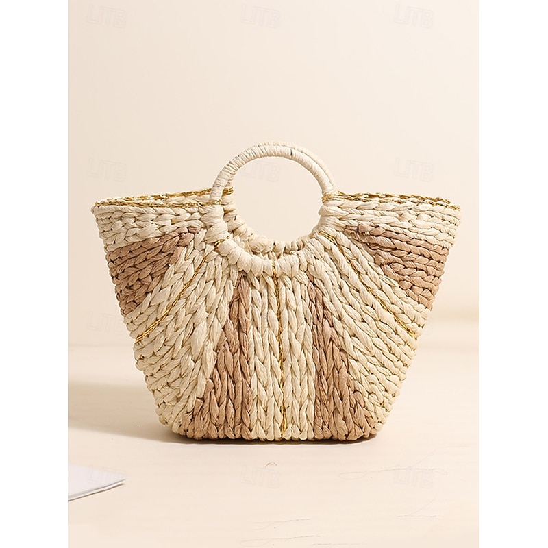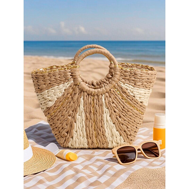 HOT ! Women's Stylish Woven Straw Beach Bag with Circular Handles, Large Capacity, Eco-friendly Boho Design, Perfect for Summer, Vacations and Day Trips
