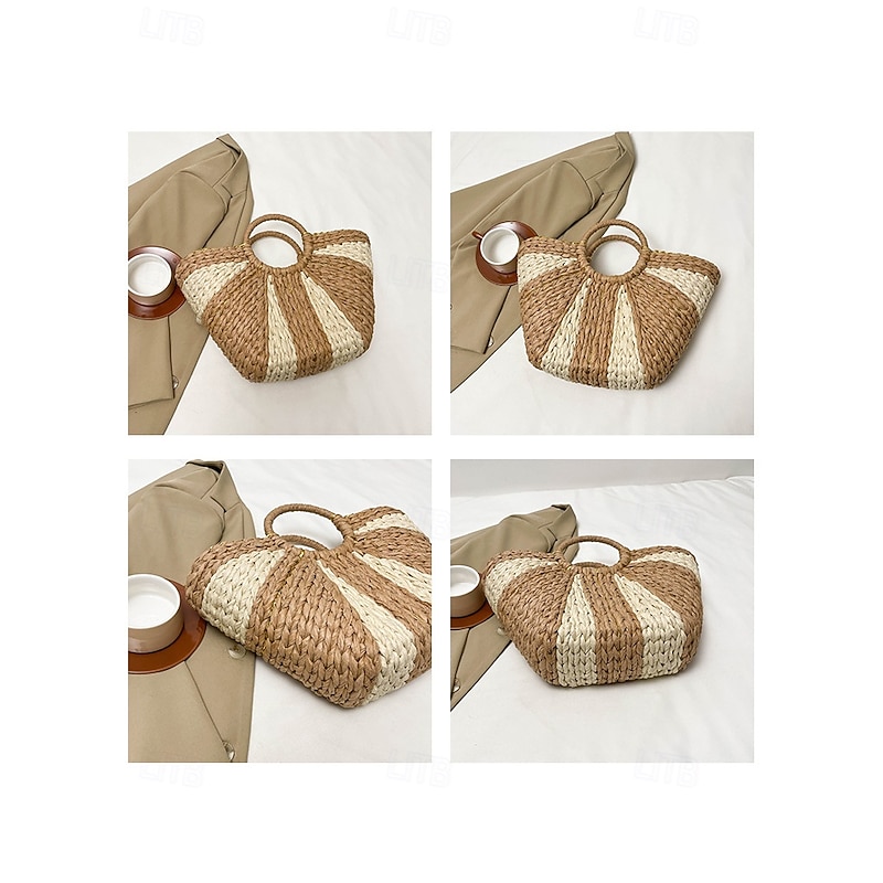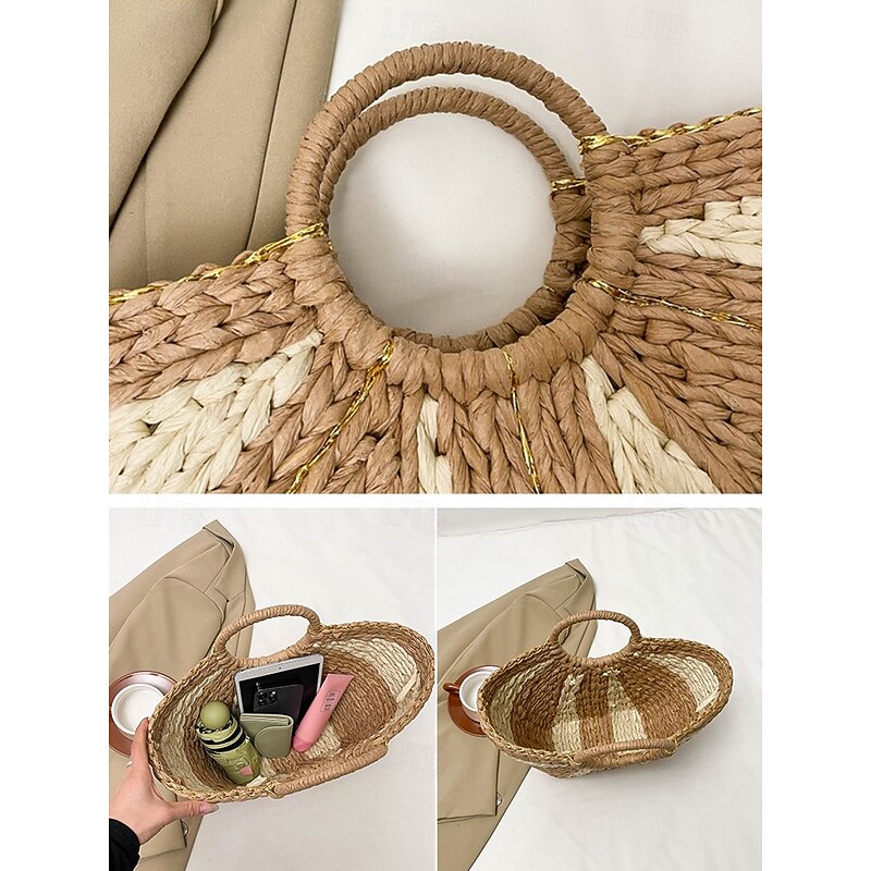 Women's Stylish Woven Straw Beach Bag with Circular Handles, Large Capacity, Eco-friendly Boho Design, Perfect for Summer, Vacations and Day Trips 19