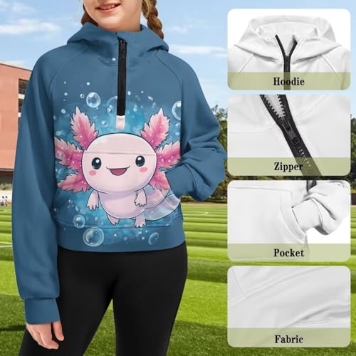 • Half-Zip Design: The cute hoodies for girls kids features a half-zip design, allowing for easy adjustment of the neckline size to maintain a comfortable temperature at all times. The waist length is designed to be simple and stylish. The half-zip design makes it convenient to put on and take off. The garment has pockets on both sides, providing both warmth and storage space