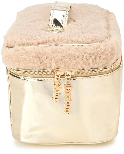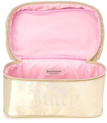 HOT ! Juicy Couture Gold Makeup Bag Cosmetics Organizer Travel Essentials Train Case Shiny Rhinestones Faux Shearling