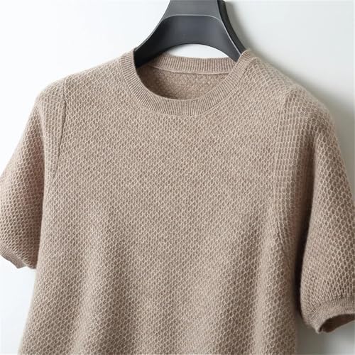HOT ! Men’S Wool O-Neck Short Sleeve Honeycomb Jacquard Knit Pullover Business Casual Knitted Jumper Top