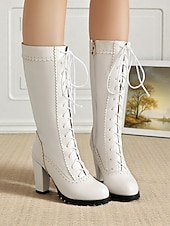 Women's Red Faux Leather Lace-Up Knee-High Boots, 1950s Retro Chunky Heel Combat Booties for Cosplay, Parties & Winter Fashion 20