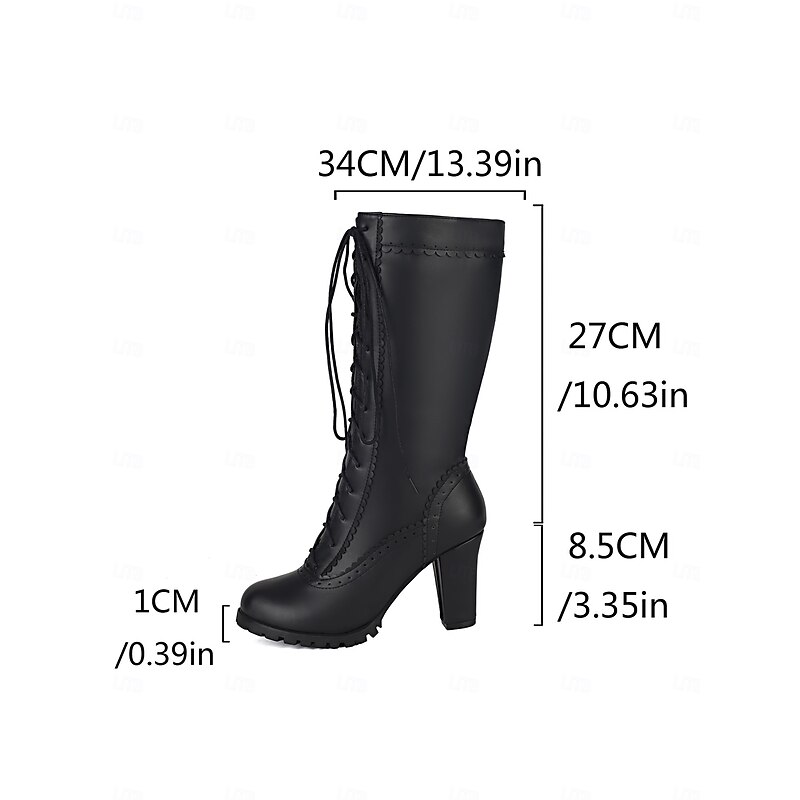 Women's Red Faux Leather Lace-Up Knee-High Boots, 1950s Retro Chunky Heel Combat Booties for Cosplay, Parties & Winter Fashion 16