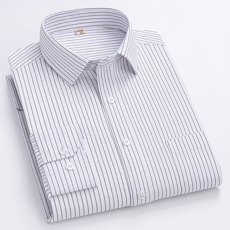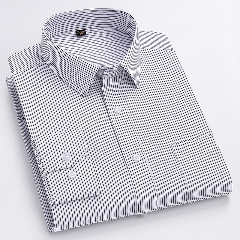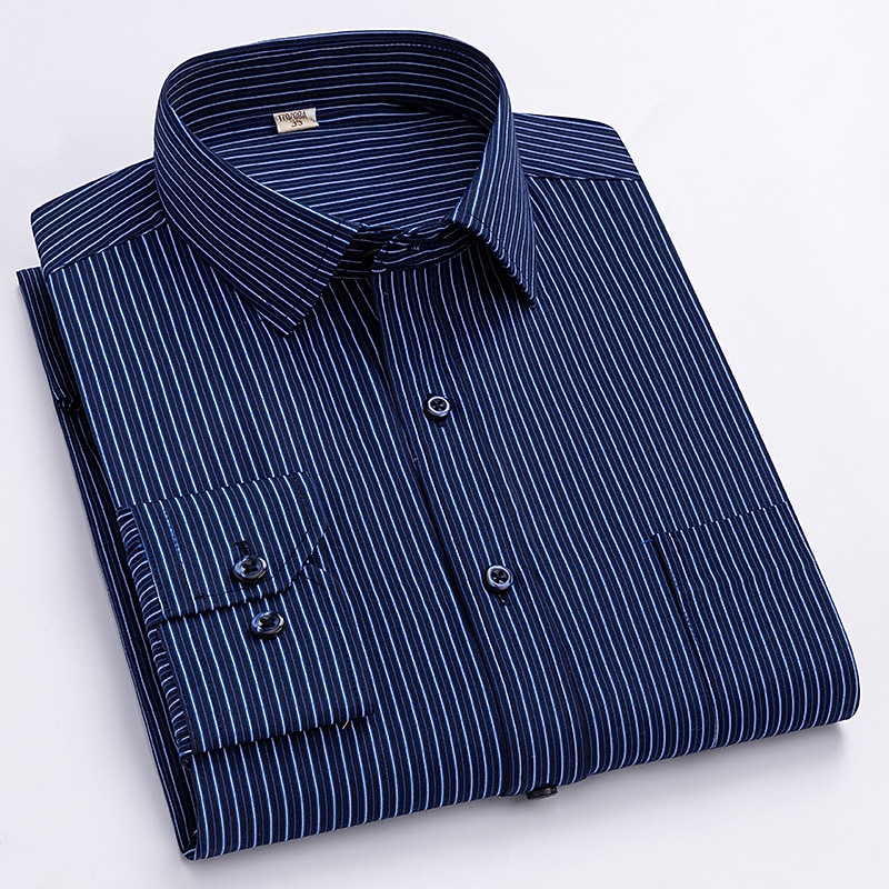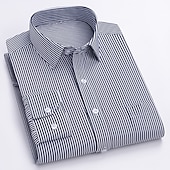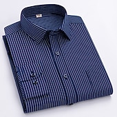 More information about Dress Shirt Striped Shirt Work Shirt Non Iron Shirt Stripes and Plaid Wedding Office & Career Black White Dark Navy Navy Blue Long Sleeve Turndown All Seasons Clothing Apparel