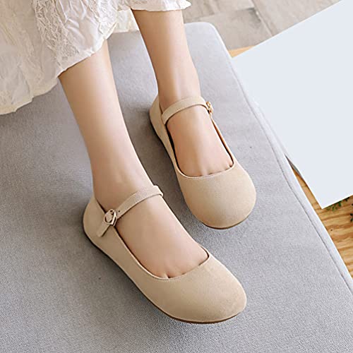 Caradise Womens Faux Suede Mary Jane Ballet Flat Ankle Strap Round Toe Pumps 6
