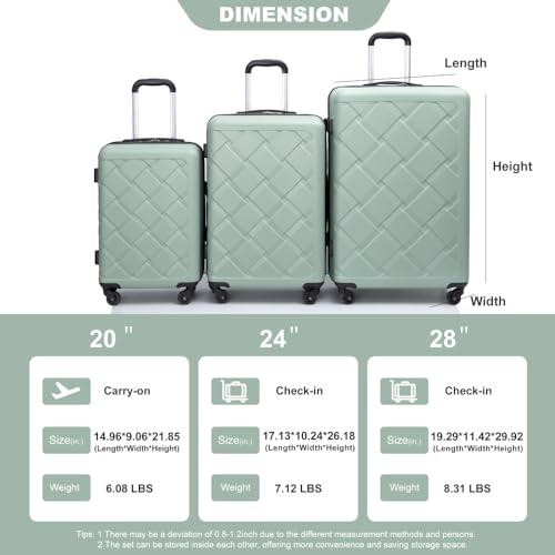 Expandable Hardshell Suitcase Double Spinner Wheels PP Luggage Sets Lightweight Durable Suitcase with TSA Lock,3-Piece Set (20/24/28+portable handbag + 4 pieces storage bag set) (Green) 3