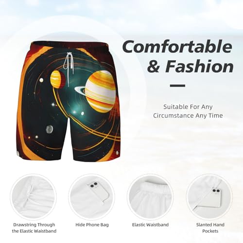 Solar System Jupiter Saturnshort Swim Trunks with Waist Rope and Two Side Pockets Beach Shorts Bathing Suits for Men 6