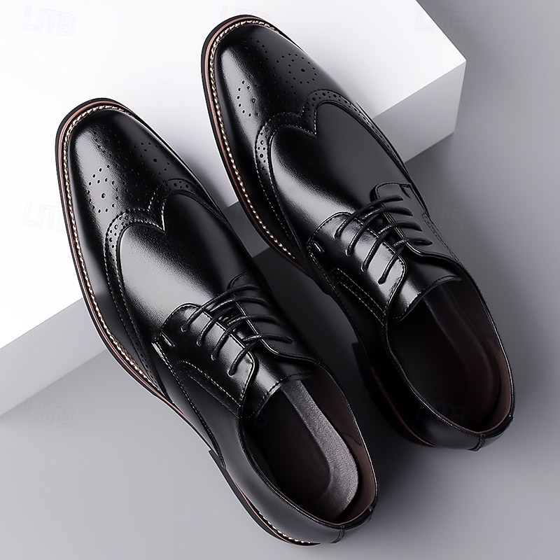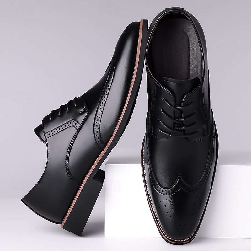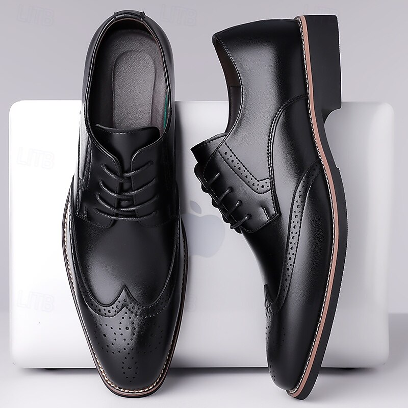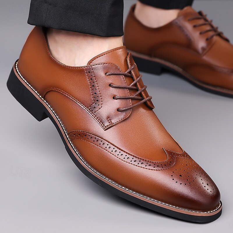 HOT ! Men's Classic Brown Wingtip Oxford Shoes – Faux Leather Brogue Lace-Up Dress Shoes for Business and Formal Occasions