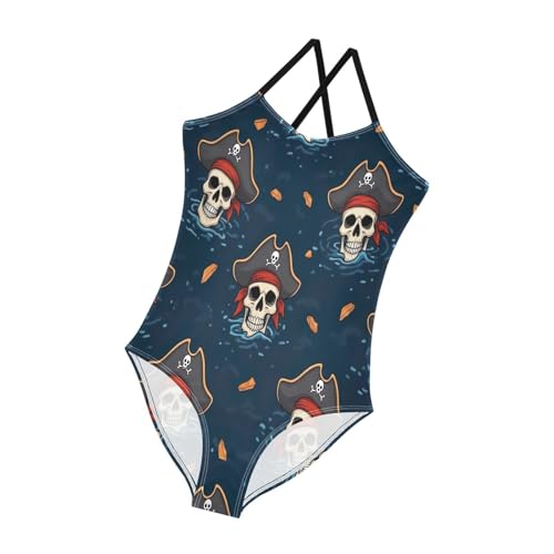 Toddler Bathing Suits for Girls, Summer Beach Swimsuit 3-10 Y, Pirate Skulls Teal 1