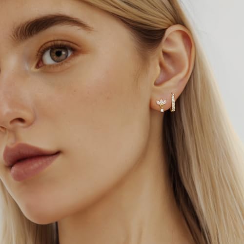 GEORGE · SMITH Gold Earring Sets for Multiple Piercing 14K Gold Plated Dainty Earrings for Women Hypoallergenic Huggie Hoop Drop Dangle Stud Earrings Cartilage Earring Set 2