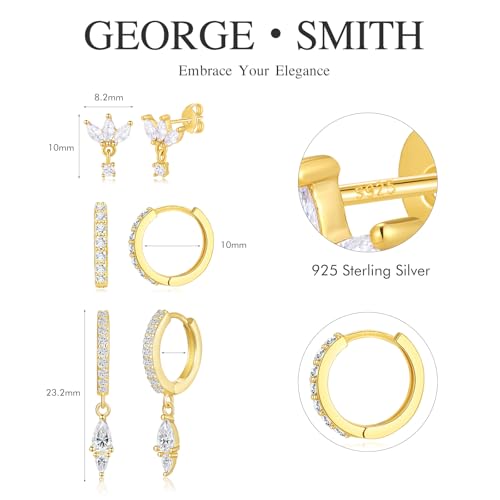 More information about GEORGE · SMITH Gold Earring Sets for Multiple Piercing 14K Gold Plated Dainty Earrings for Women Hypoallergenic Huggie Hoop Drop Dangle Stud Earrings Cartilage Earring Set