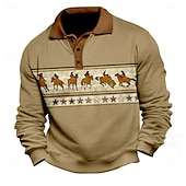More information about Men's Graphic Polo Long Sleeve Polo Shirts Collared Shirts Casual National Style Athleisure Daily Wear 3D Print Spring Fall Winter Dark Brown