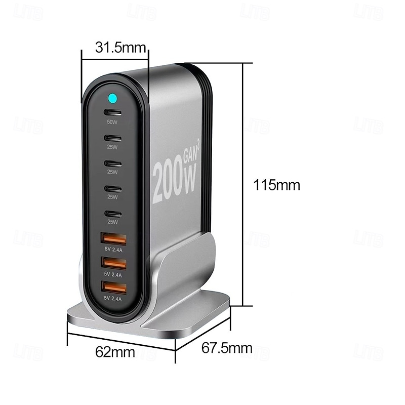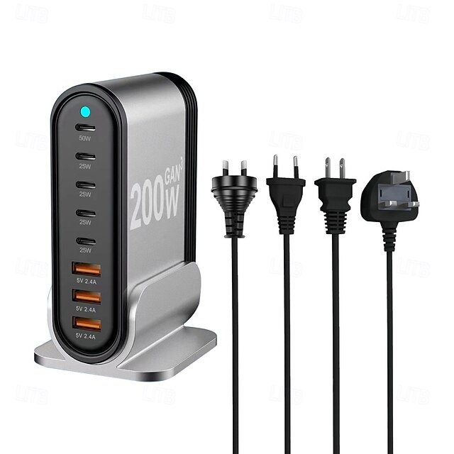 $62.99 - 200W GaN Gallium Nitride PD Charger 5C3A Aluminum Alloy Desktop Stand Adapter 200W Multi-function Charger 2025. Shop for cheap Computer Peripherals online? Buy at lightinthebox.com on sale today!