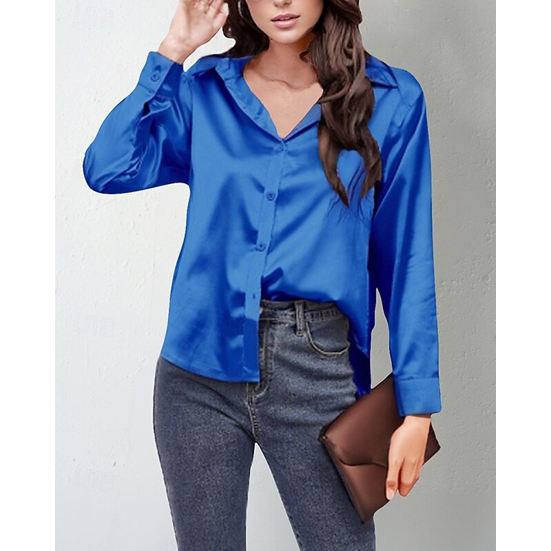More information about Women's Shirt Elegant Dressy Satin Solid Color Elegant Stylish Basic Long Sleeve Shirt Collar Regular Tops Daily Going out Buttons White Yellow Royal Blue Light Purple Brown Spring Fall