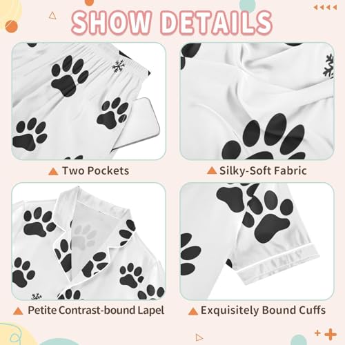 ALAZA Snowflake Paw Print White Satin Pajamas Set Short Sleeve Button Down Sleepwear Summer Pjs 2 Piece 4