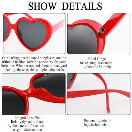 • High Quality: Girls heart sunglasses are made of quality material. which is strong and durable. The lens is made of AC material, which is resistant to high temperature and has good anti-ultraviolet function.