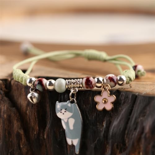 HOT ! Pingyongchang 6Pcs Cute Animal Cat String Rope Braided Bracelet for Women Lovely Cartoon Kitten Flower Handmade Adjustable Bracelet Animals Cat Lover Friendship Jewelry Birthday Gifts