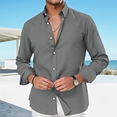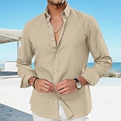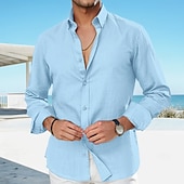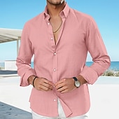 More information about Men's Linen Shirt Summer Shirt Beach Wear Casual Shirt Button Up Shirt Plain Vacation Curise Black White Pink Royal Blue Long Sleeve Lapel Spring & Summer Clothing Apparel