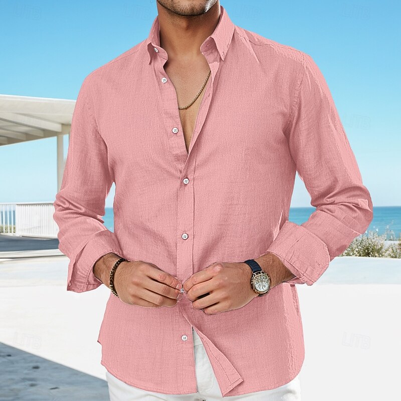 : Crafted from a breathable cotton and linen blend, this men's shirt is tailored for ultimate comfort in warm weather. The lightweight fabric enhances breathability, making it an ideal choice for both summer and spring.
