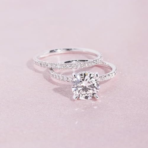 Moissanite Rings 2PCS Engagement Rings Set for Women | 2 Carat Oval Cubic Zirconia Wedding Sets | Wedding Band Ring | Promise Rings for Her 18K White Gold Plated Jeelry Gifts Size 6-10 Size 7 4