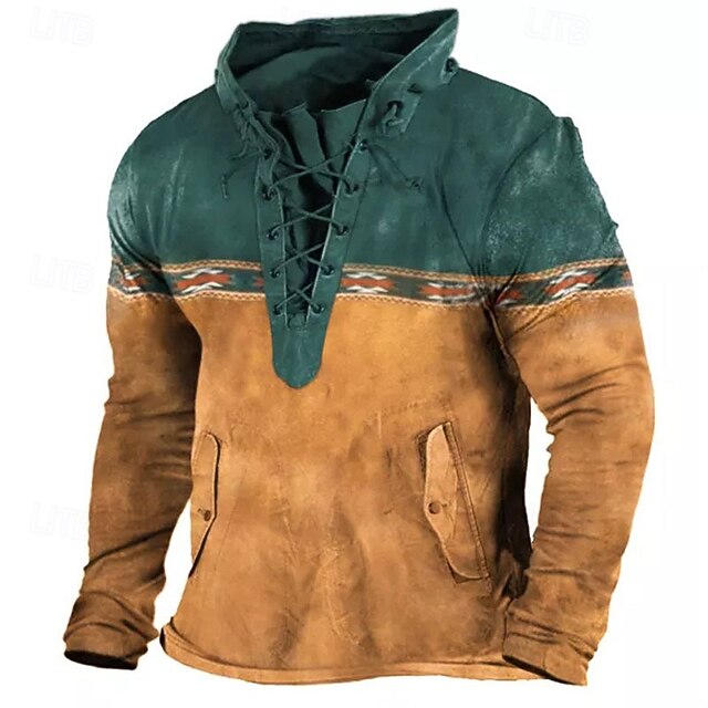 More information about Men's Unisex Color Block Graphic Prints Sweatshirt Long Sleeve Sweatshirt Hooded Designer Casual Big and Tall 3D Print Sports & Outdoor Daily Sports Lace up Print Spring & Fall