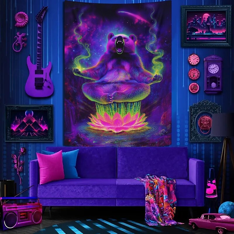 $17.99 - Blacklight Tapestry Glow in the Dark Glow Party UV Reactive Meditation Bear Animal Trippy Misty Hanging Tapestry Wall Art Mural for Living Room Bedroom 2025. Shop for cheap Blacklight Tapestries online? Buy at lightinthebox.com on sale today!