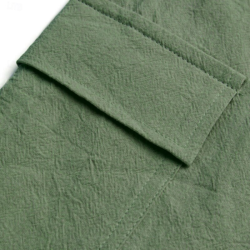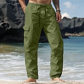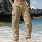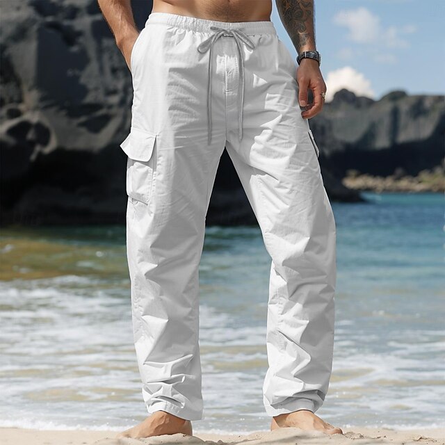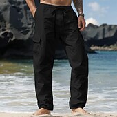 More information about Men's Cargo Pants Linen Pants Trousers Summer Pants Drawstring Elastic Waist Multi Pocket Plain Comfort Breathable Full Length Casual Daily Holiday Vacation Fashion Black White Inelastic