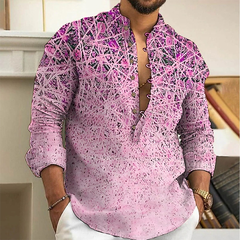 More information about Men's Geometry Ethnic Shirt Button Up Shirt Long Sleeve Fashion Streetwear Designer Outdoor Casual Daily Summer Spring Fall Stand Collar Print Yellow Pink Blue Brown Green