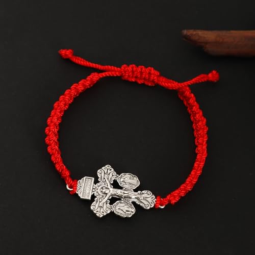 HOT ! Pardon Crucifix Religious Bracelet for Women Men,St Benedict Bracelet,Milagrosa Medal Bracelets,La Cruz Del Perdon Catolica,Crucifijo Del Perdon,Crucifijos Catolicos,Medalla De San Benito Bracelets(Red)