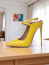 More information about Women's Yellow Patent Leather Stiletto Heels - Bold Pointed Toe High Heels with Ankle Strap for Urban Parties and Nightlife