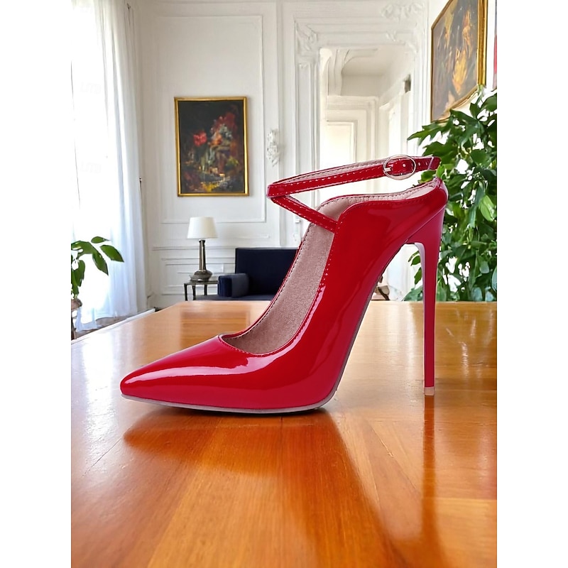 HOT ! Women's Yellow Patent Leather Stiletto Heels - Bold Pointed Toe High Heels with Ankle Strap for Urban Parties and Nightlife